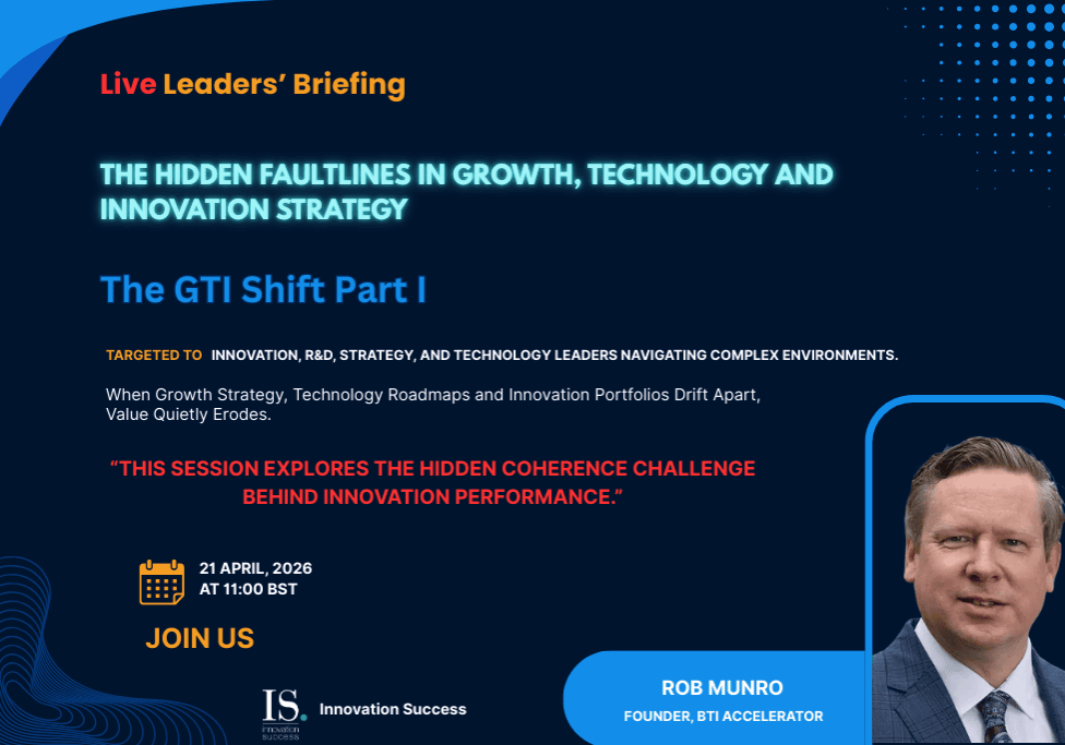 Across four executive briefings, we will explore how organisations move from fragmented innovation activity to a coherent Growth–Technology–Innovation system capable of delivering breakthrough results.
